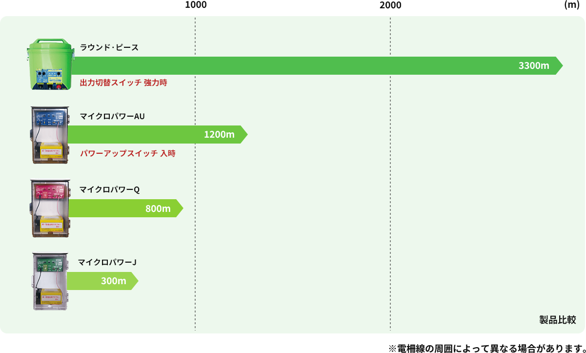 | 有効柵線距離 | 1段張り | 3300m | 3300m | 1200m | 800m | 300m |