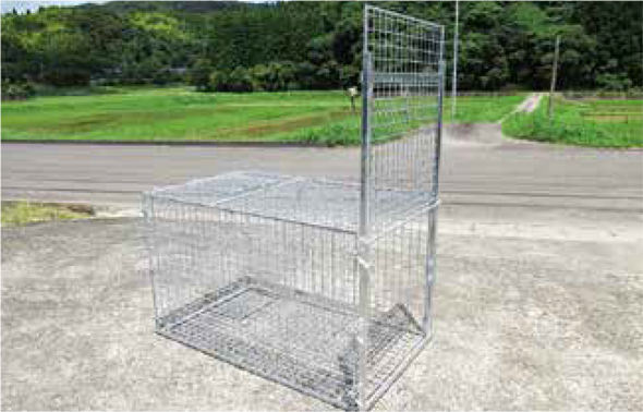 ワイヤーメッシュや金網柵に侵入しようとするイノシシや鹿を捕獲する。