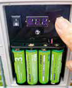 電池電圧表示スイッチ付で電池電圧がわかります。5.5Vになったら交換して下さい。