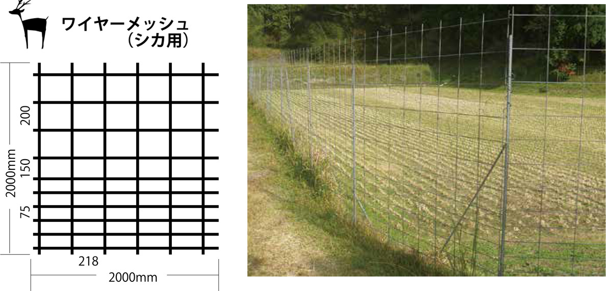 ステンレス線入りシカ用ネットです。 強力·高品質·ステンレス線混入ポリエチレン使用。 金網と違い形状が自由に変えられるため、地形に合わせて施工が可能です。 シカ等による噛み切りを防ぐため、金属線を混入してあります。