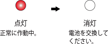 自動作動/電池切れを常時確認。点灯→消灯したら電池交換時期です。